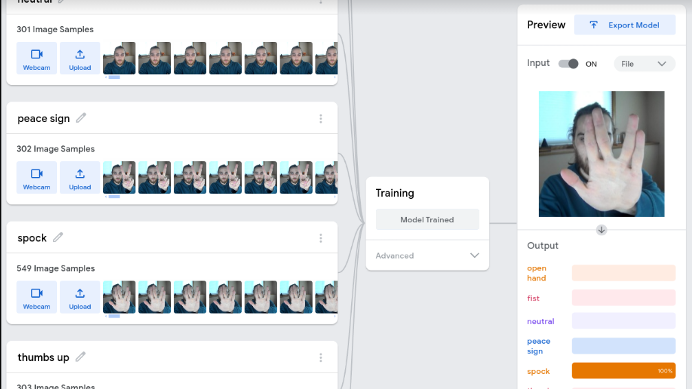 Google’s Teachable Machine là một công cụ trực tuyến giúp việc tạo mô hình học máy trở nên nhanh chóng, dễ dàng và có thể tiếp cận với mọi người. Với Teachable Machine, trẻ em dạy AI nhận diện hình ảnh, âm thanh hoặc tư thế để xem AI “học”. Chỉ với 3 bước dễ dàng: thu thập dữ liệu, huấn luyện mô hình và xuất mô hình. Các em có thể sử dụng các mô hình học của mình trong các dự án, trang web, ứng dụng và nhiều thứ khác. Đây là công cụ được ưa chuộng trong các lớp học AI của chúng tôi, nơi học sinh tạo ra một trò chơi sử dụng Teachable Machine nhận diện và phản hồi các cử chỉ tay của người chơi. Ví dụ, nhân vật trong trò chơi nhảy lên khi bạn nắm chặt tay. Trẻ em rất thích thấy sự kết nối giữa thế giới vật lý và thế giới kỹ thuật số.